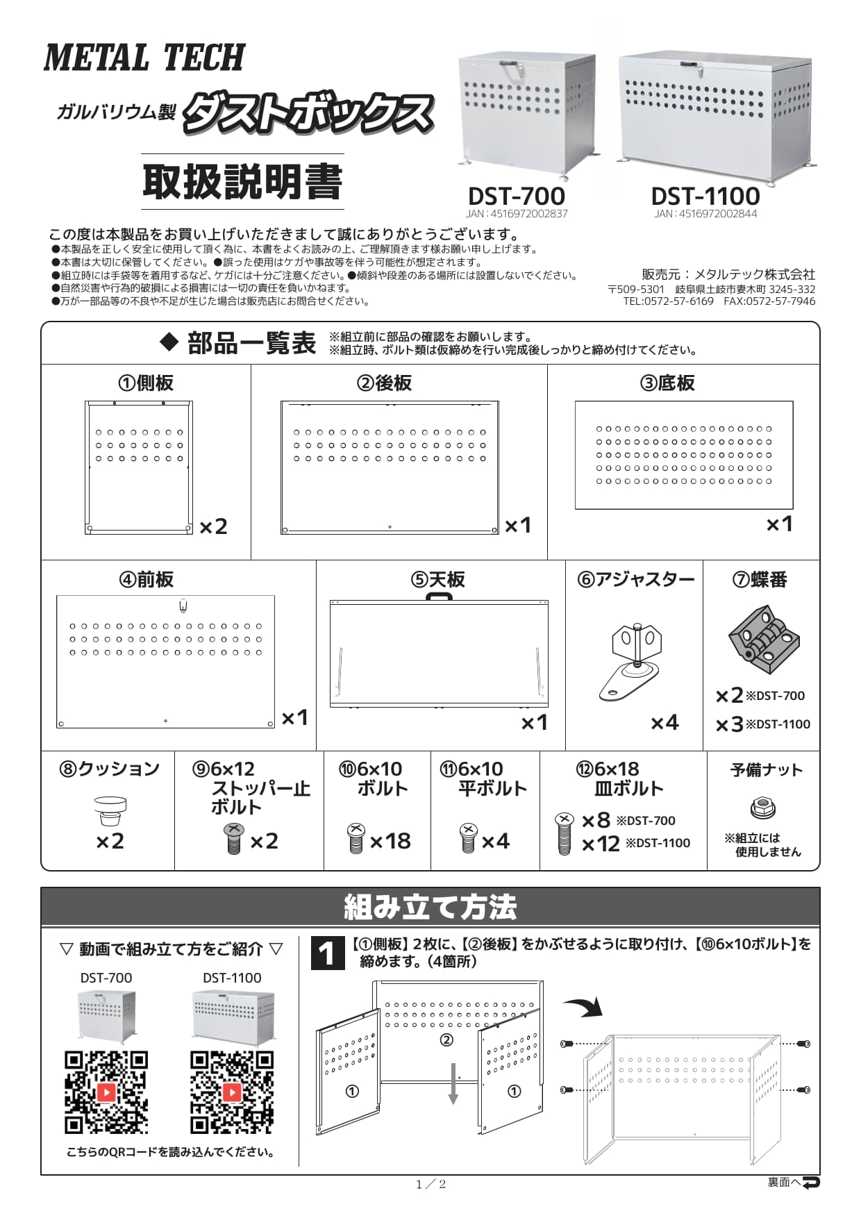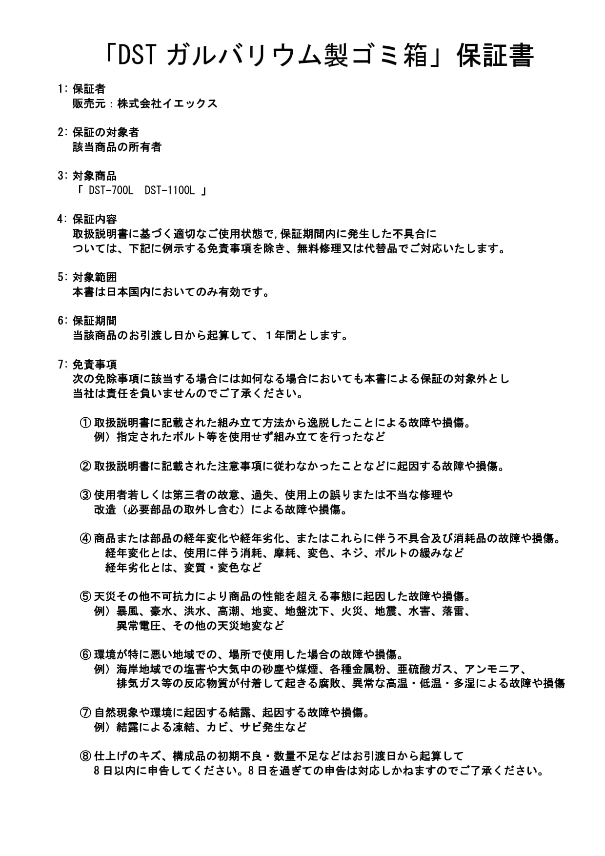 TOP ガルバリウムゴミ箱について ガルバリウムゴミ箱について 保証書 DST-700L,1100L 2025.10.24 14:11 取扱説明書 DST-700L,1100L 2025.10.24 14:11